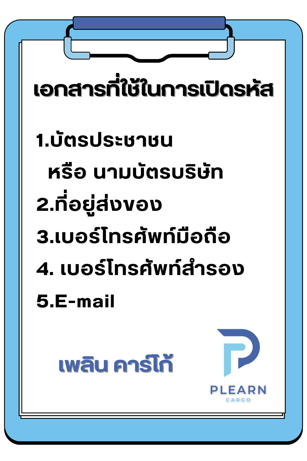 2. ส่งเอกสารที่ใช้ในการเปิดรหัสให้กับ เพลิน คาร์โก้