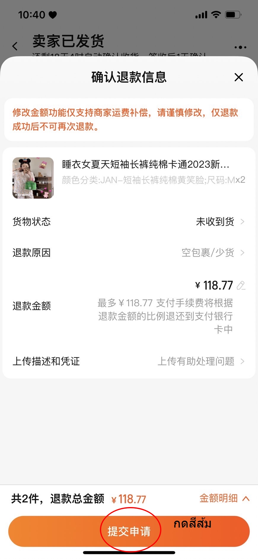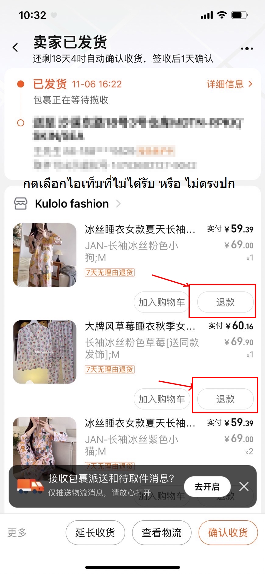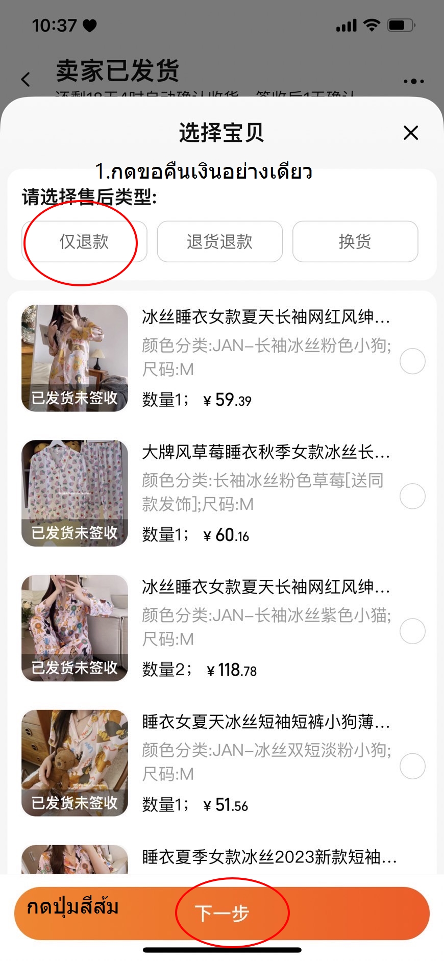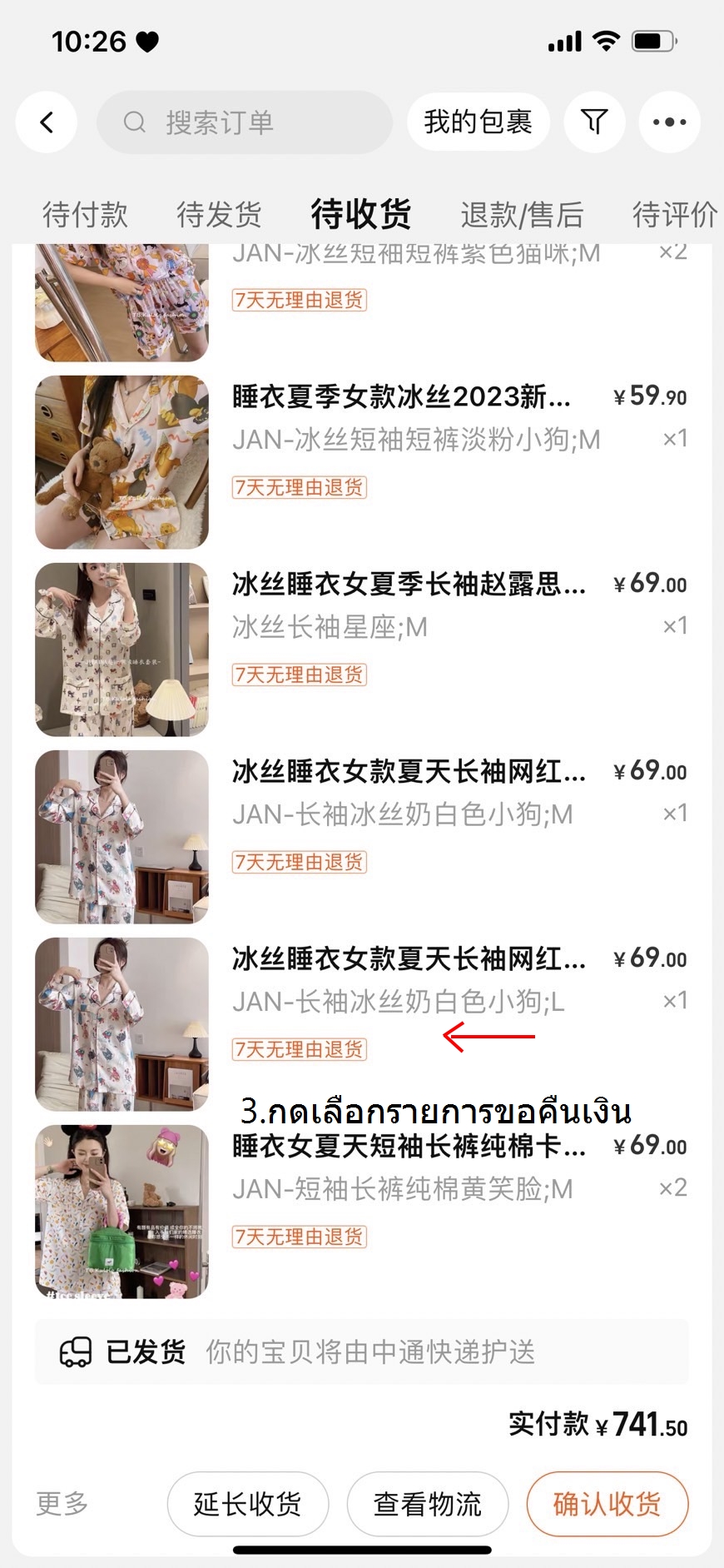 3.กดตรงปุ่มขอคืนเงิน 退款